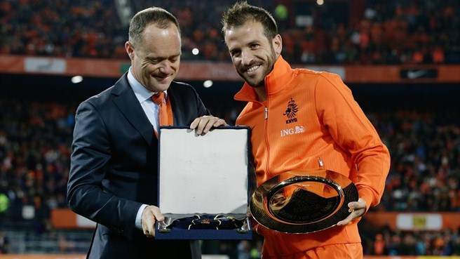 Голландия терма жамоаси сардори Рафаэл ван дер Ваарт Голландия терма жамоаси таркибида 100 учрашувда майдонга тушгани учун тақдирланди.