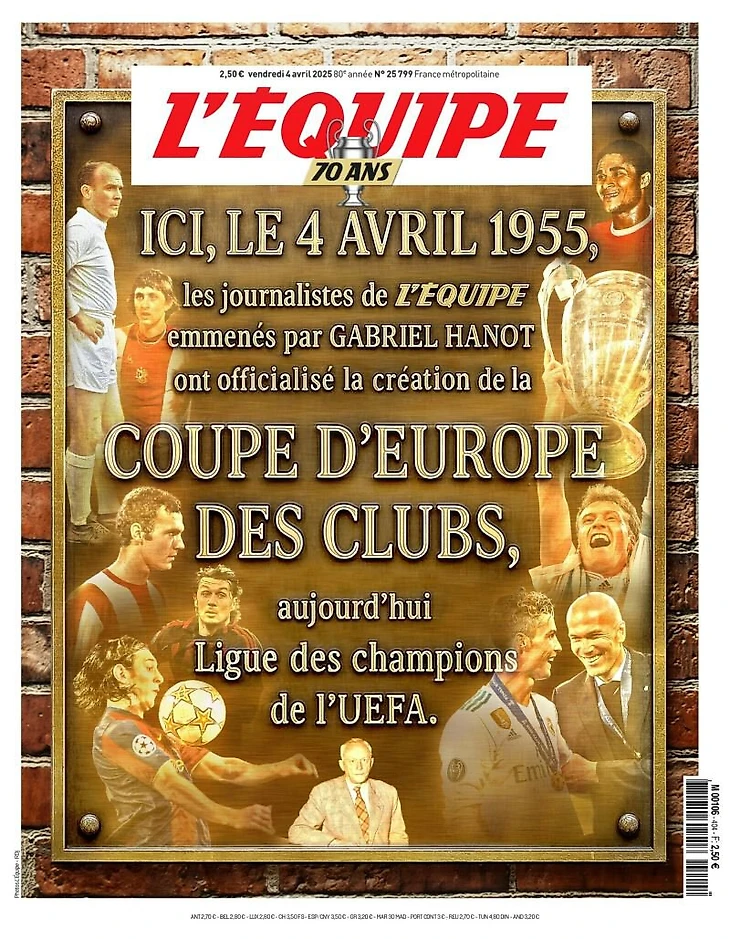 L’Équipe Чемпионлар лигасининг 70 йиллигига бағишланган махсус сон билан чиқди.