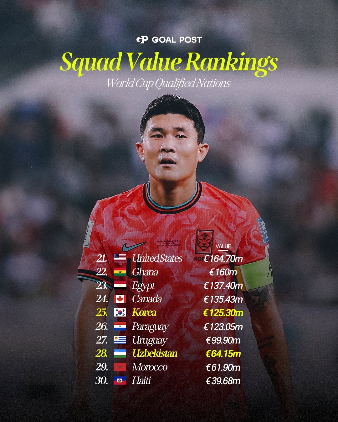 Goal Post саҳифаси 2026 йилги Жаҳон чемпионатида иштирок этадиган терма жамоаларнинг трансфер нархлари бўйича рейтинг тузиб чиқди.