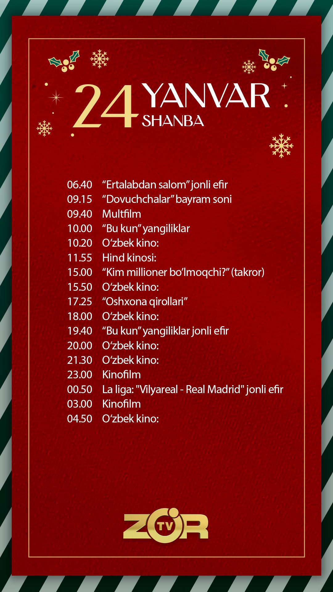 ZO'R TV телеканали бугун — 24-январь, шанба куни Испания чемпионатининг 21-туридан ўрин олган "Вильярреал" - "Реал Мадрид" ўйини жонли эфирда намойиш этади.