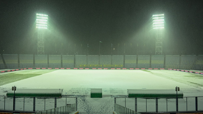 Тошкентда ёғаётган қор майдонни қоплагани учун учрашув соат 20:30 да старт оладиган бўлди. Айни пайтда майдонни қордан тозалаш ишлари олиб борилмоқда.