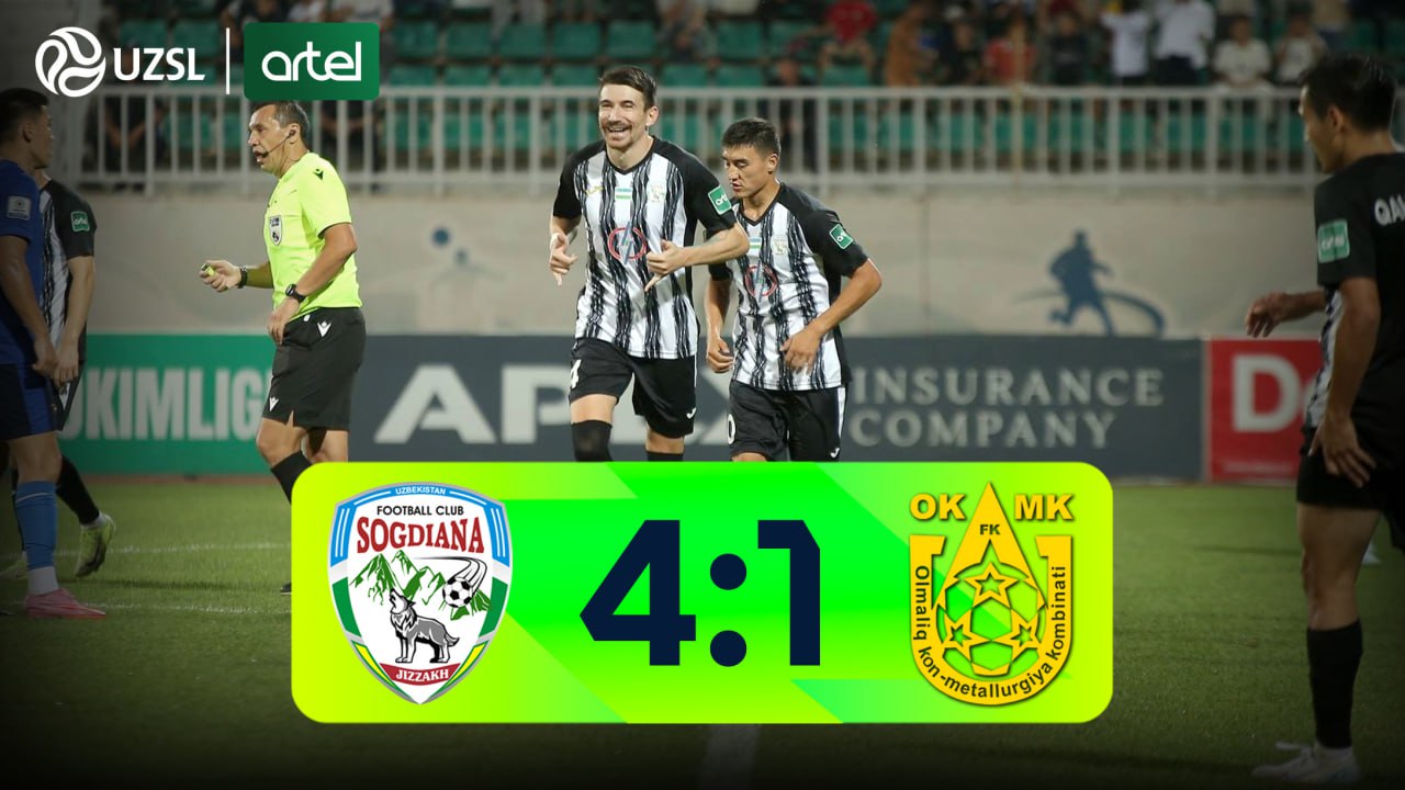 Superliga 21-turida "So‘g‘diyona" OKMKni yirik hisobda mag‘lub etdi - 4:1.