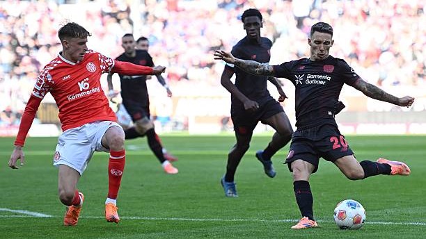 "Bayer" safarda Bundesliganing 7-turida "Mayns"ga qarshi bahs olib bordi va 4:3 hisobida g‘alaba qozondi. O‘yin "Meva Arena" stadionida bo‘lib o‘tdi.