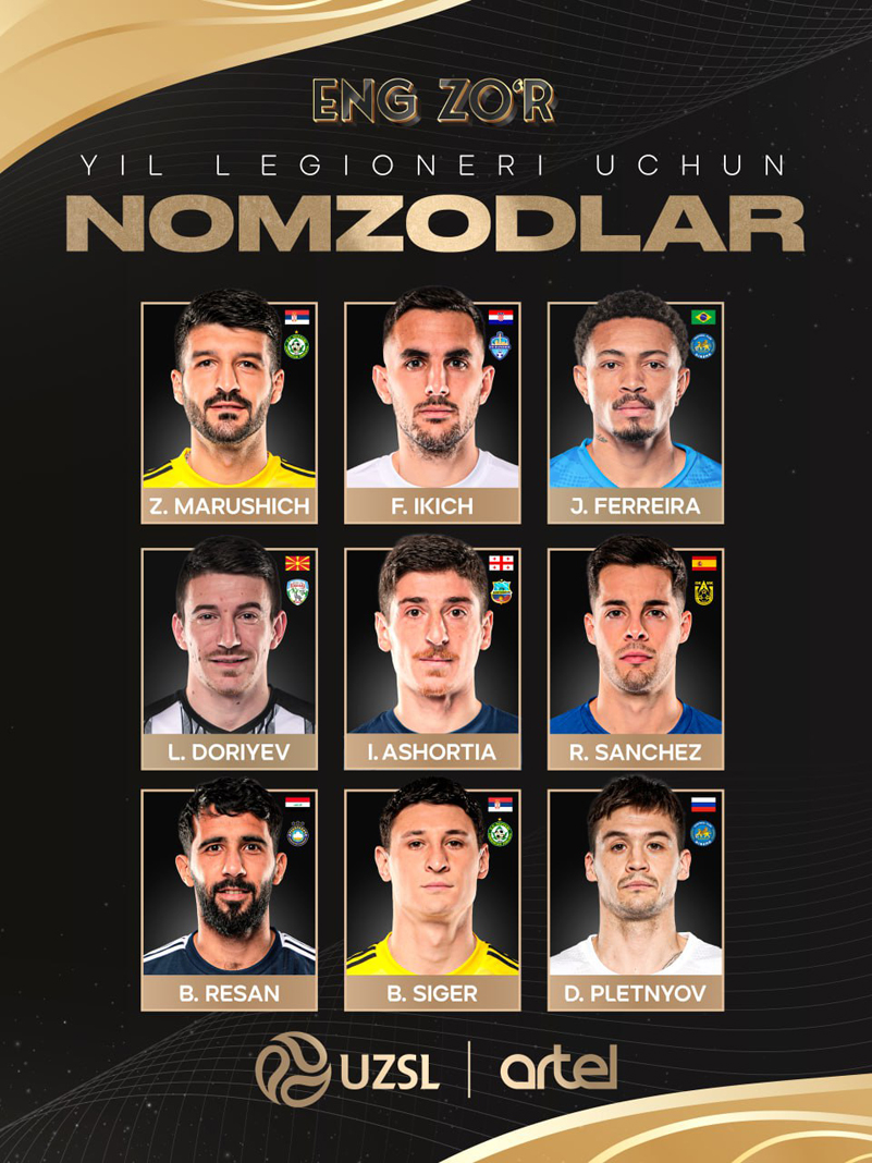 O‘zPFL matbuot xizmati Superliganing joriy mavsum yakunlari bo‘yicha "Yilning eng yaxshi xorijlik futbolchisi" mukofoti uchun nomzodlar ro‘yxatini e’lon qildi.