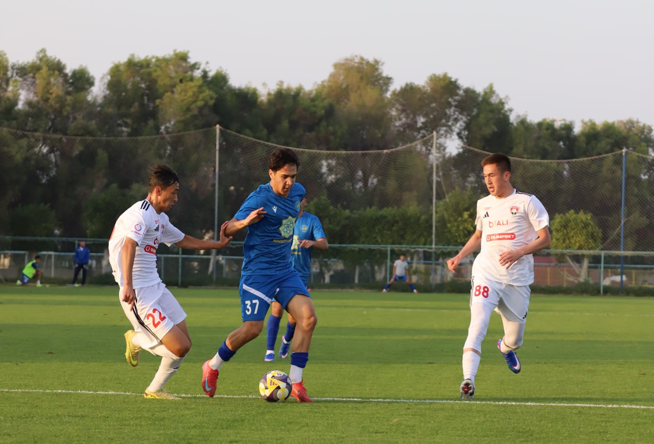 «Ar-Rashid» stadionida kechgan bahsda Vadim Abramov jamoa safida deyarli barcha futbolchilarga imkoniyat berdi. Uchrashuvning 1-daqiqasidayoq Nurulla To‘xtasinovning uzatmasidan keyin Anvarjon Hojimirzayev hisobni ochgan bo‘lsa, birinchi bo‘lim yakunida qozoqlar hisobni tenglashtirishdi – 1:1.