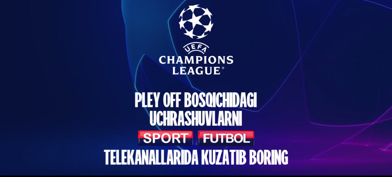 Yevropa Chempionlar Ligasi 2025/2026 yilgi mavsumi pley-off o‘yinlaridan boshlab yurtimizda Sport va Futbol TV orqali ham jonli namoyish etila boshlaydi. Bu haqda Sport telekanali telegram-kanali xabar berdi.