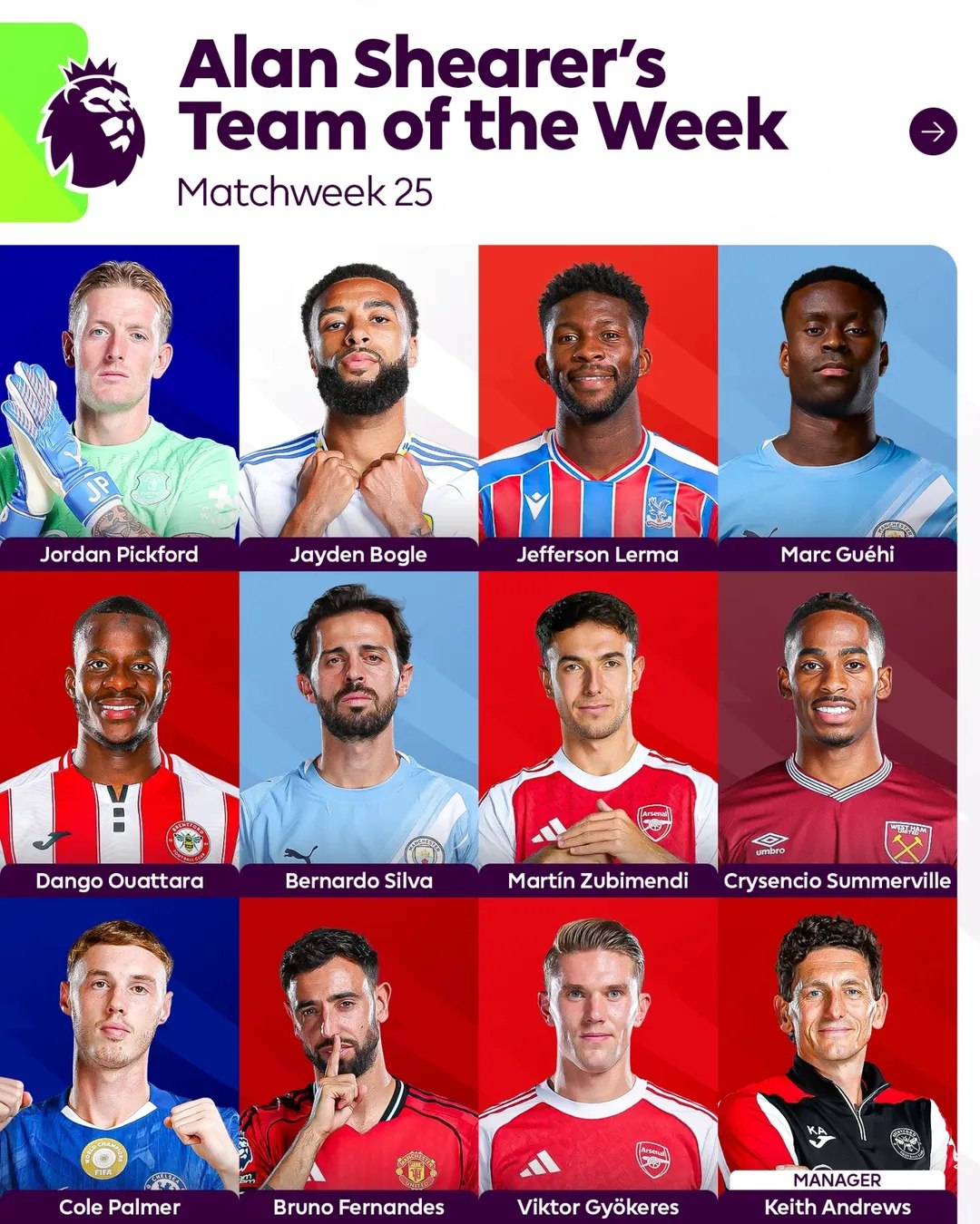 "Nyukasl" va Angliya terma jamoasining afsonaviy sobiq hujumchisi Alan Shirer o‘z talqiniga ko‘ra Premyer-liga 25-tur ramziy jamoasini tuzib chiqdi.
