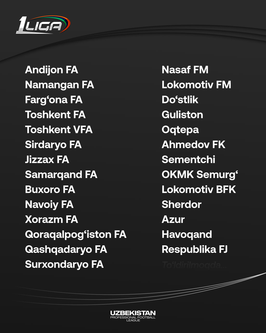 Avvalroq Assosiasiya qoshidagi 14 ta futbol akademiyasi Birinchi ligada ishtirok etishi e’lon qilingandi. Endilikda ular qatoriga Respublika FA jamoasi ham qo‘shiladi. Bunda Respublika FA o‘z mavqeidan kelib chiqqan holda, bir vaqtning o‘zida ikki turli musobaqada ishtirok etishi ko‘zda tutilgan. Bu o‘z navbatida turli yoshdagi terma jamoalarga nomzod bo‘lgan futbolchilarning ichki musobaqalar davomida toblanib borishiga zamin yaratadi.