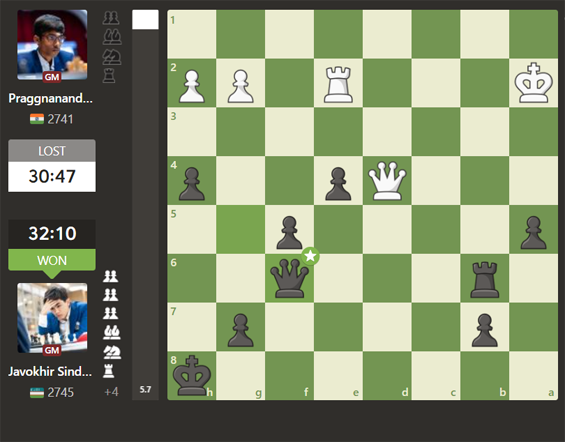 Rameshbabu Pragnanandha - Javohir Sindarov - 0:1