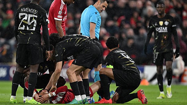 Fransiyalik futbolchini maydondan zambilda olib chiqib ketishdi, uning o‘rniga Muhammad Saloh maydonga tushdi.