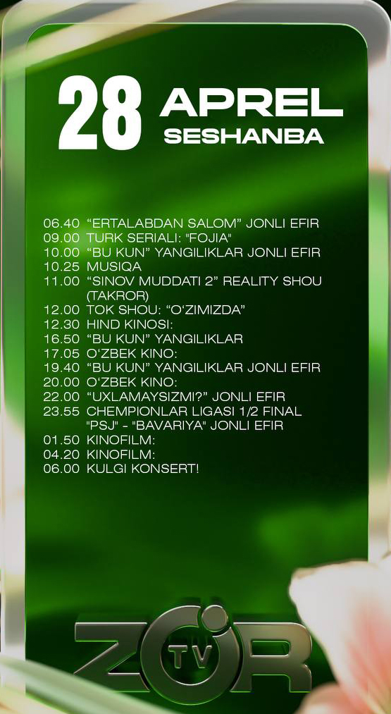 Yevropa chempionlar ligasining yarim final bosqichi doirasida bo‘lib o‘tadigan "PSJ" - "Bavariya" o‘yini 28-aprel kuni Zo'r TV telekanali orqali jonli translyasiya qilinadi.
