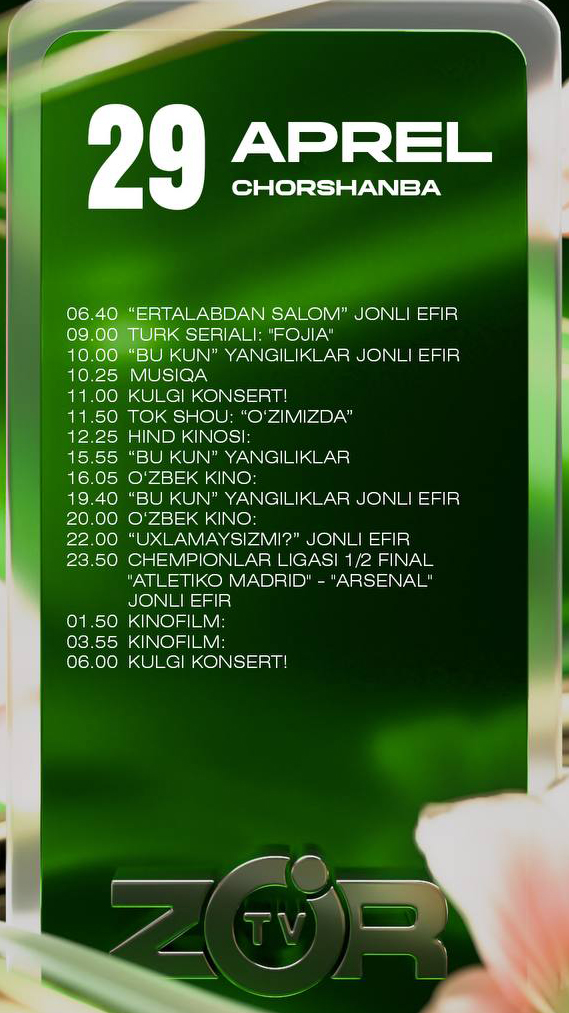 Yevropa chempionlar ligasining yarim final bosqichi doirasida bo‘lib o‘tadigan "Atletiko" - "Arsenal" o‘yini 29-aprel kuni Zo'r TV telekanali orqali jonli translyasiya qilinadi.
